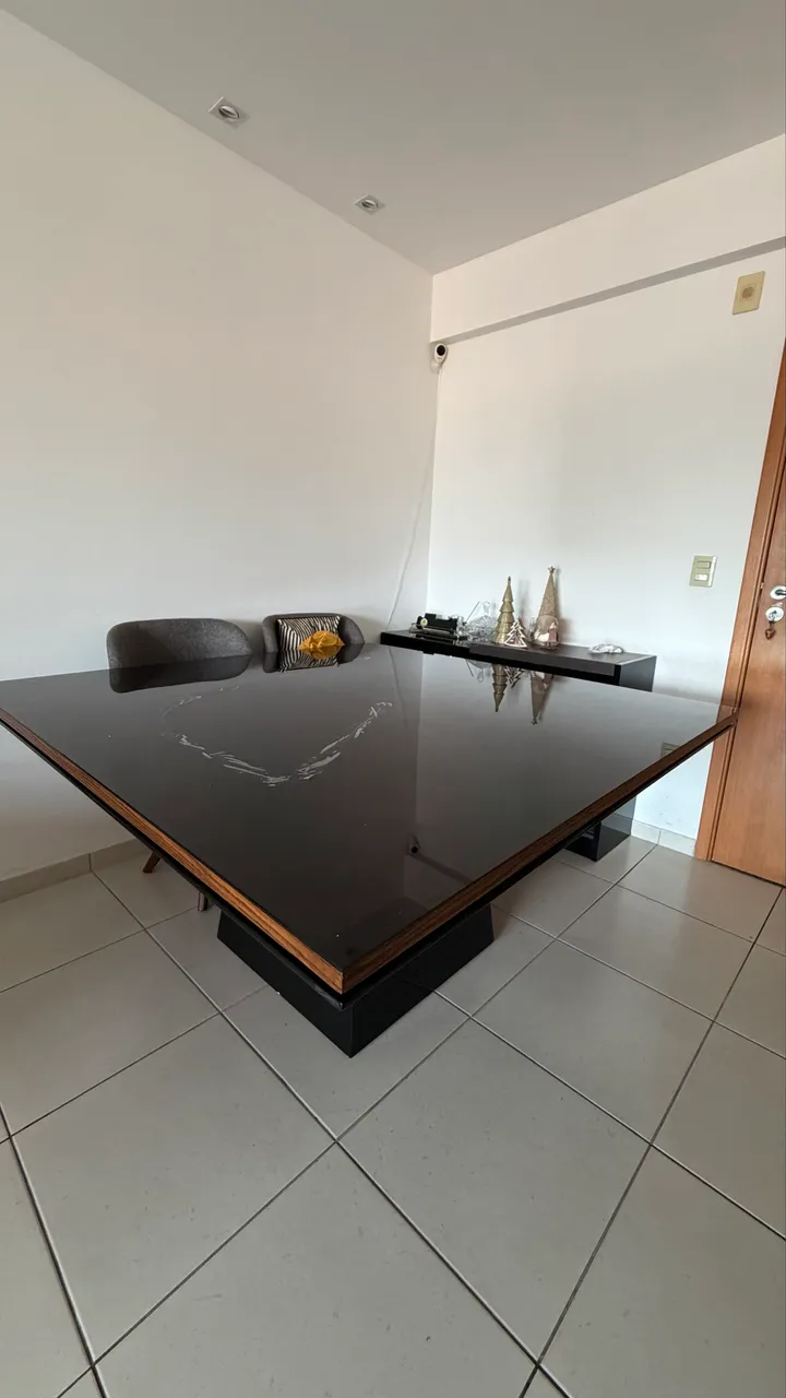 Mesa com tampo de vidro e base de madeira super conservada, somente o vidro que está com avaria conforme mostrado na foto tamanho 1,50 x 1,50