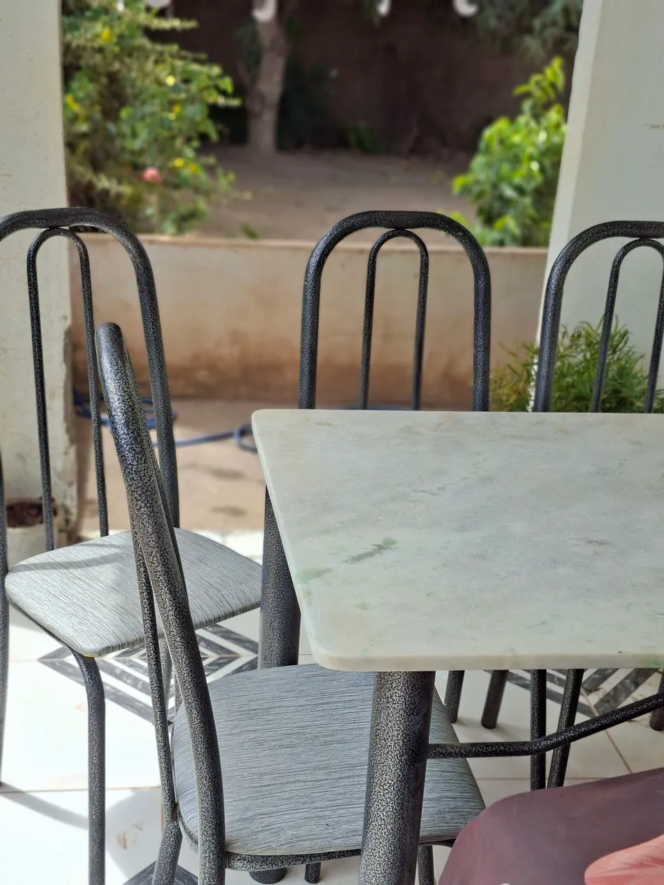 Mesa 04 cadeiras com tampa pesada de mármore em ótimas condições