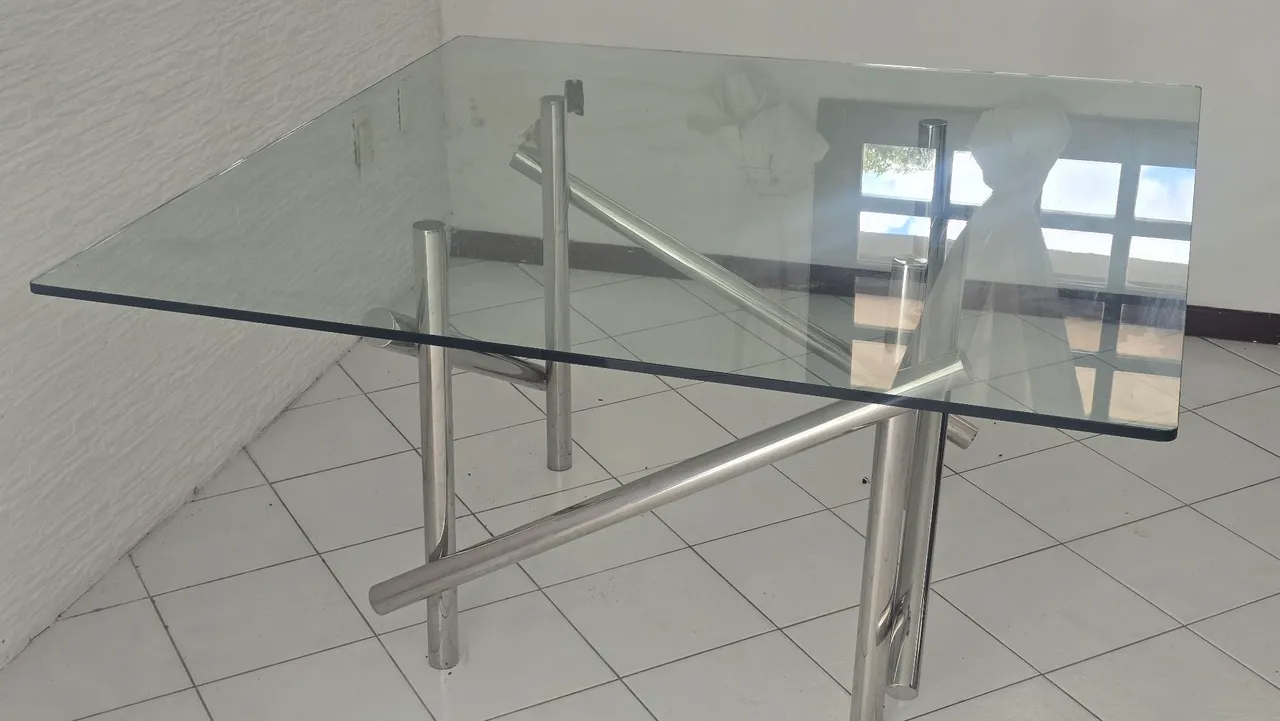 Linda mesa de vidro, design moderno e elegante para sua casa. Perfeita para diversos ambientes, combinando beleza e funcionalidade. Base em alumínio. Tendo 1.40 ×1.40
