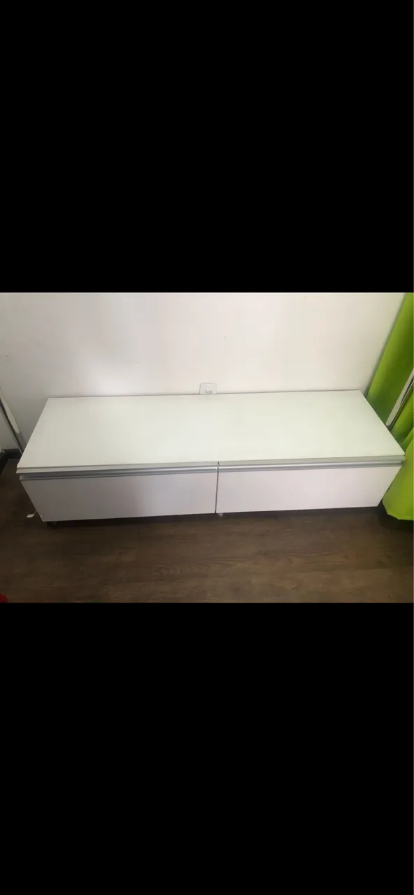 Rack branco moderno e elegante, ideal para organizar sua sala de estar. Design clean e funcional, perfeito para complementar qualquer ambiente.
