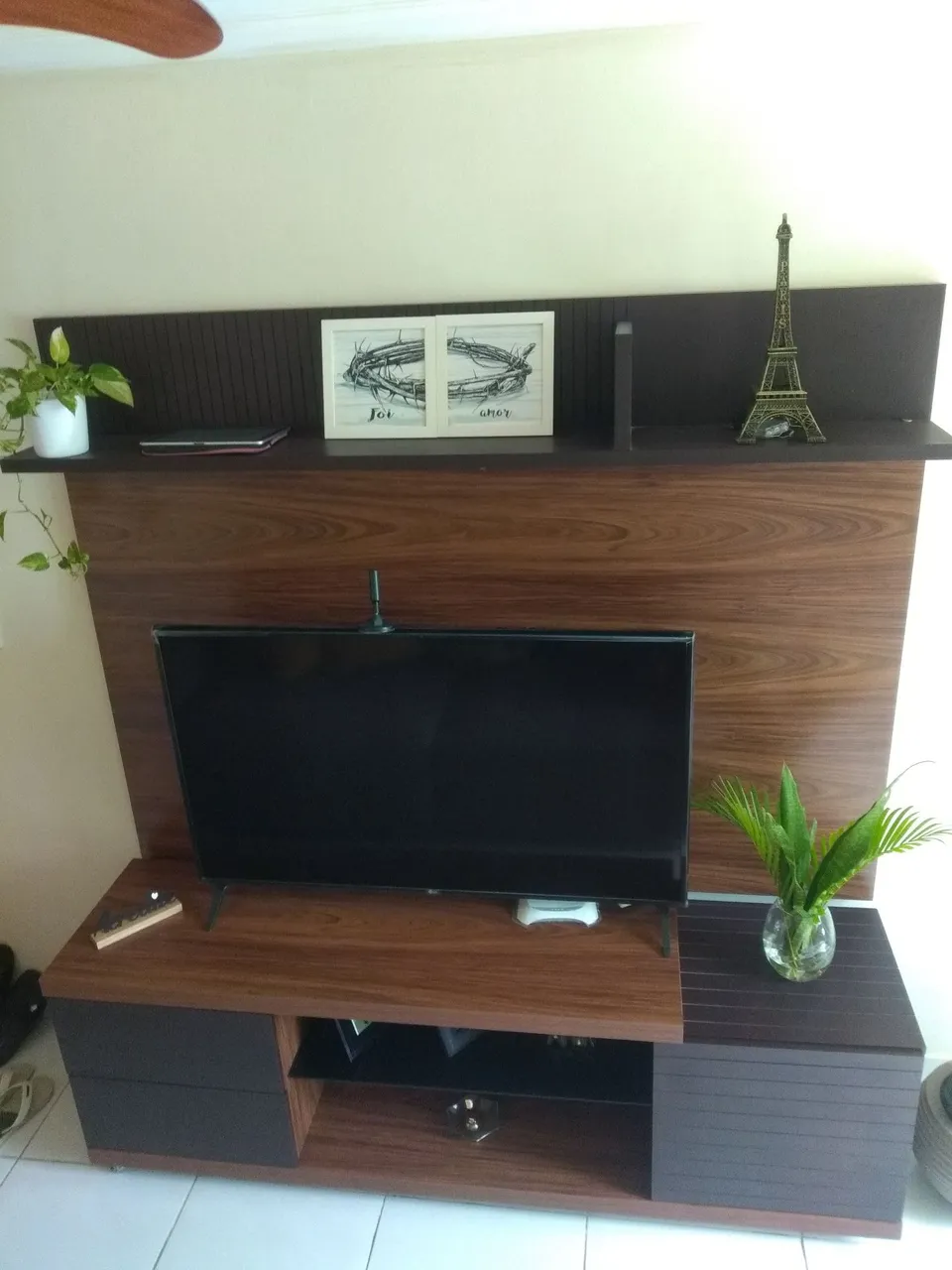 Rack c painel em madeira. Perfeito estado. Medidas Rack 1,80×,044, 0,60 Painel 1,80×1,35 Não fazemos entrega.
