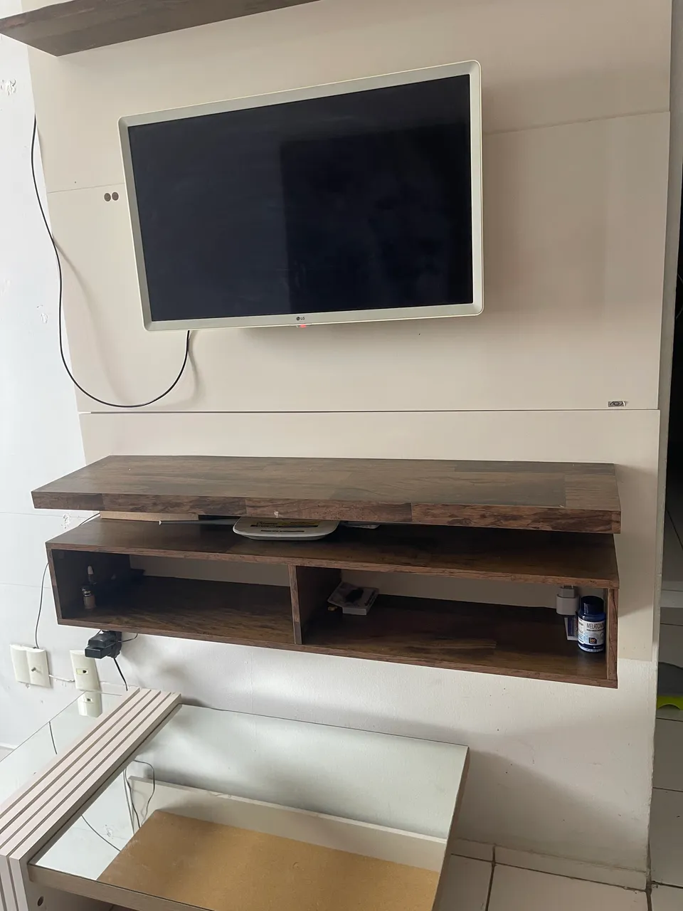 Aproveite a praticidade e beleza deste rack moderno, perfeito para sua sala, temos a tv de 36 mais uma mesa de centro