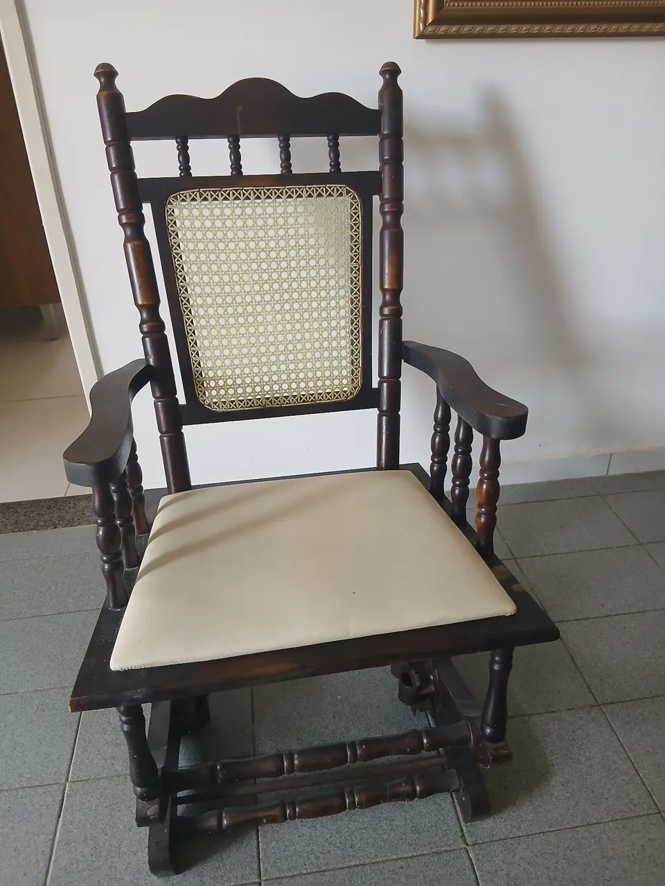 Relaxe e aproveite momentos de tranquilidade com esta charmosa cadeira de balanço de madeira. Perfeita para criar um ambiente acolhedor e confortável em sua casa.