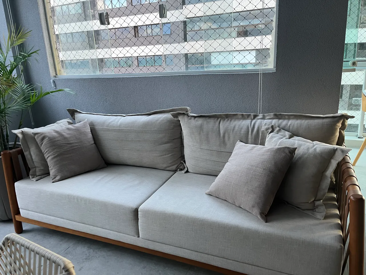 Sofá moderno e confortável, perfeito para relaxar e decorar sua sala. Design elegante e almofadas aconchegantes para momentos de descanso.