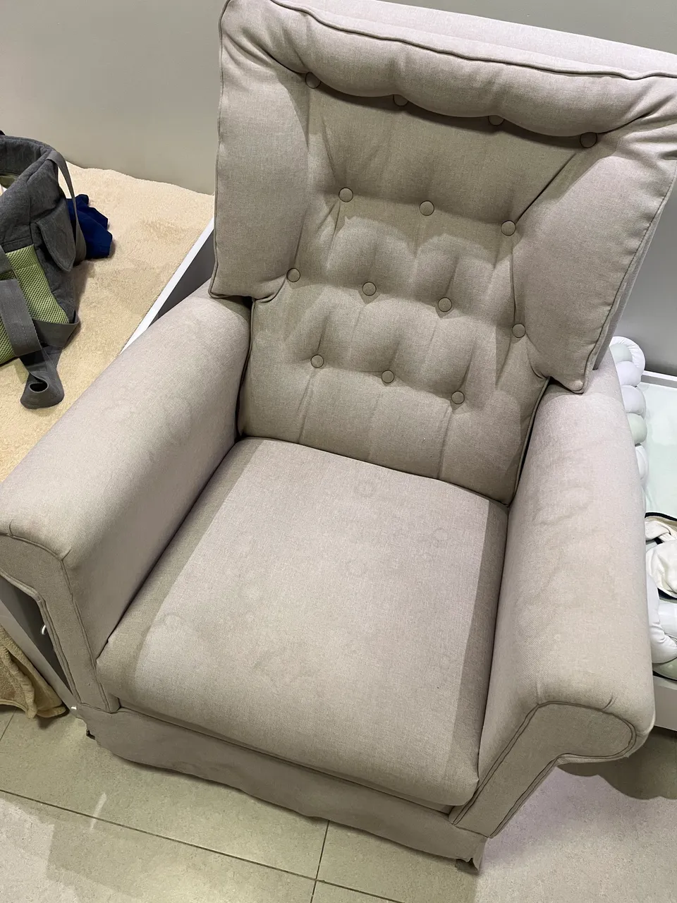 Poltrona de balanço confortável e elegante, ideal para amamentação. Design moderno e aconchegante para o quarto do bebê.