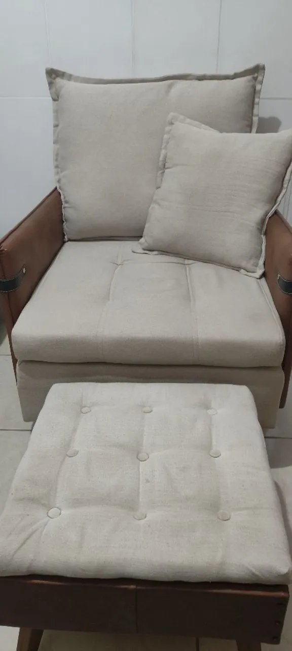 Duas poltronas bege com os puffs, está semi novo, quase nunca foi usado. Os puffs serão de brinde.