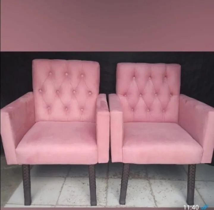 Par de poltronas pink de veludo, com design elegante e detalhes em capitonê. Perfeitas para decorar sua sala de estar ou escritório com estilo e requinte. Zap9981... ver número