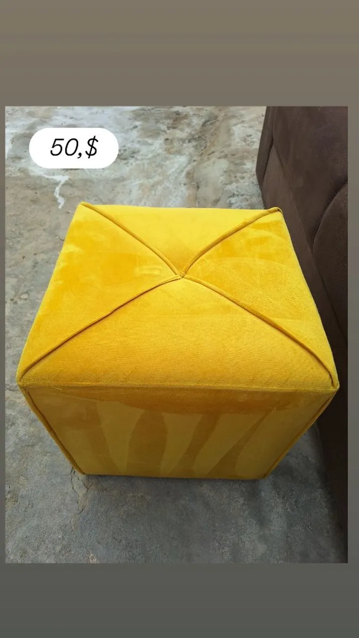 Puff decorativo amarelo, ideal para complementar sua sala de estar com estilo e conforto. Design moderno e elegante.