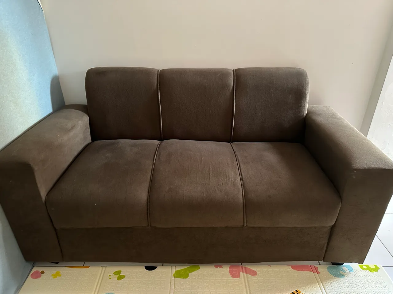 Sofá de 3 lugares, na cor marrom, em perfeito estado e com poucas marcas de uso. Um sofá de excelente qualidade, daqueles feito para durar.
