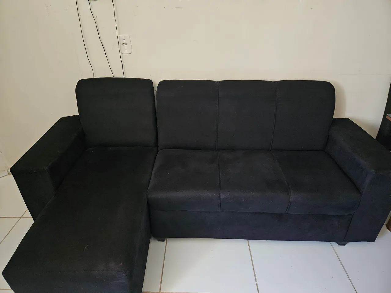 Sofá com capacidade para 4 pessoas, em formato L, divide em 2 partes.