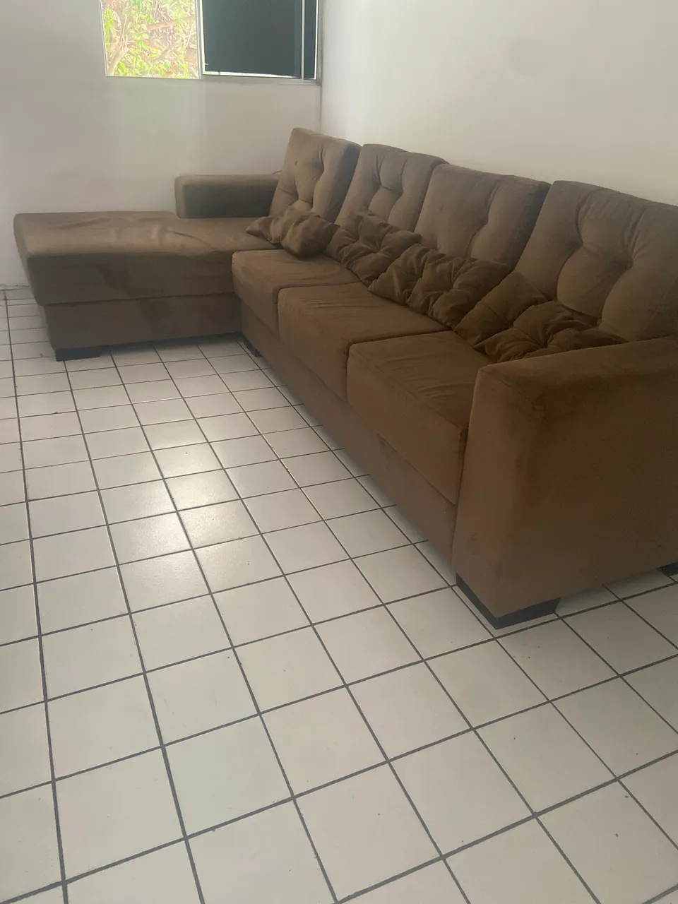 Sofá espaçoso de 4 lugares com chaise (suporta tranquilamente 5 pessoas ou mais), ideal para relaxar e aproveitar momentos de conforto. Com 3,20 metros, perfeito para a sua sala!