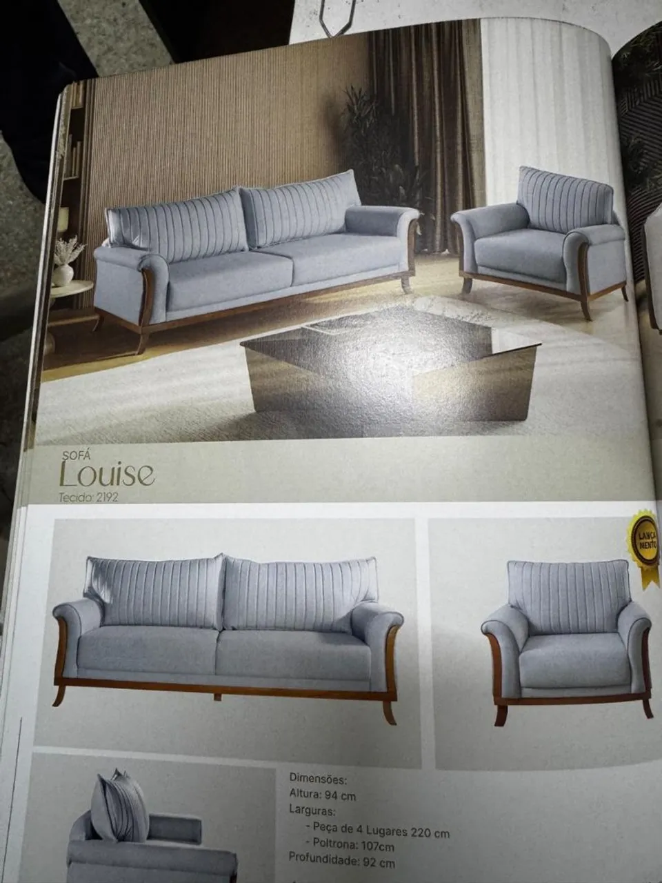 Sofá Louise com design elegante e moderno. Conforto e estilo para sua sala de estar. Tecido 2192 resistente e durável. Disponível em 4 lugares e poltrona.