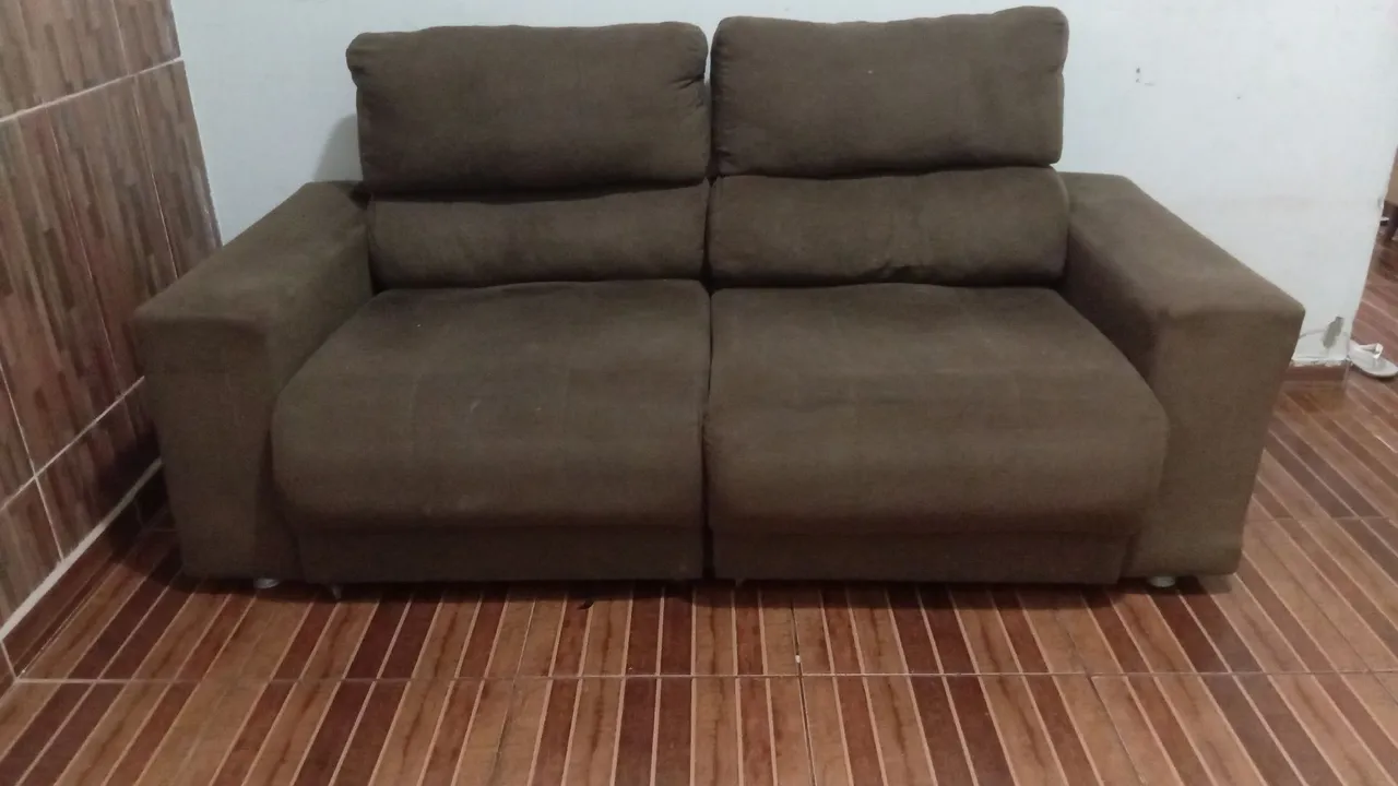 Sofá retrátil, tecido sued,COM DEFEITO EM ALGUMAS PERCINTAS Elastica, vendendo motivo mudança