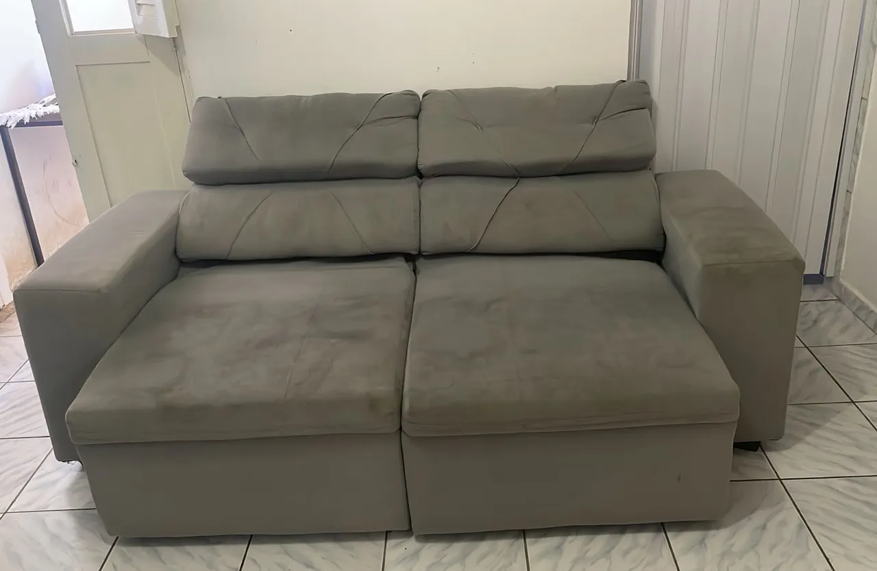 Sofá retrátil 2,10m ( sofá confortável ) sem rasgos ou furos está apenas sujo, uma lavagem a seco ele fica novinho.