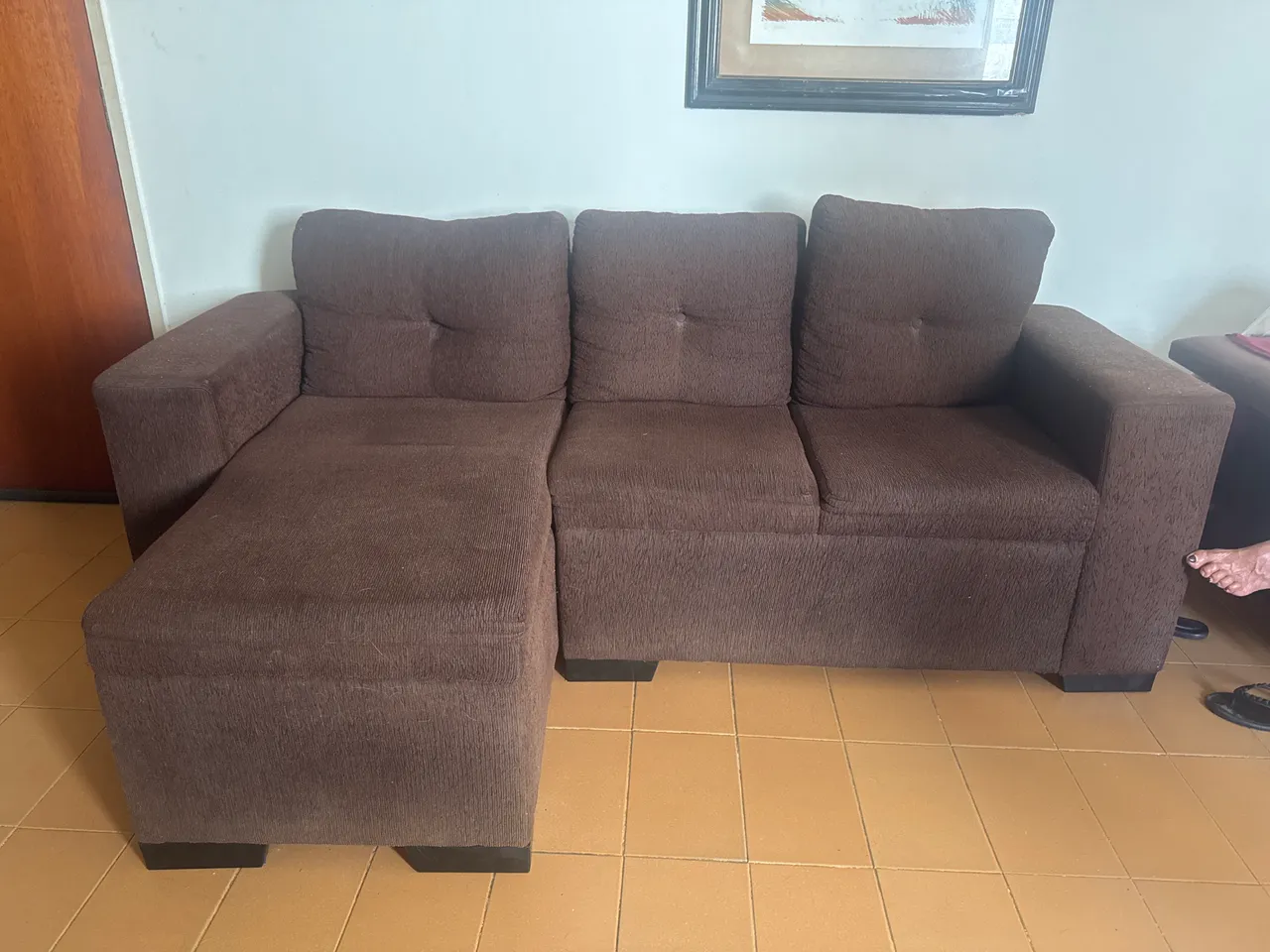 Sofá de canto marrom, ideal para relaxar e aproveitar momentos de lazer. Design moderno e confortável, perfeito para qualquer ambiente. Proporciona elegância e aconchego.