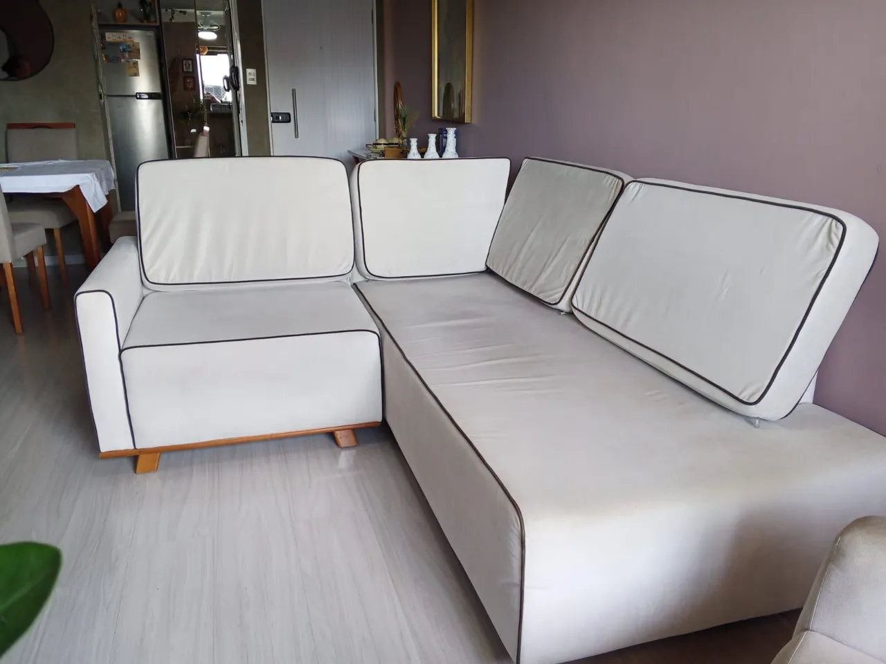 Sofá em formato "L" com design moderno e elegante. Perfeito para otimizar o espaço da sua sala, proporcionando conforto e estilo. Ideal para relaxar e receber convidados.