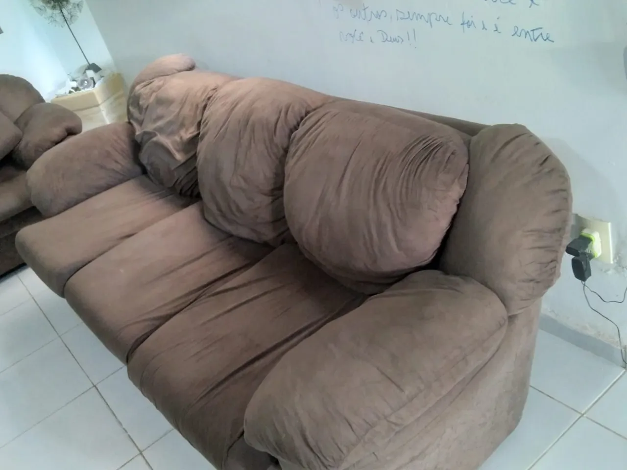 Sofá de 3 lugares, muito confortável, com almofadas soltas e capas com zíper, facilitando a limpeza e o cuidado no dia a dia. Estofado macio, ideal para relaxar, assistir TV ou receber quem você ama. Uma escolha perfeita para quem busca bem-estar, praticidade e acolhimento sem abrir mão de um bom custo-benefício. Fotos reais.