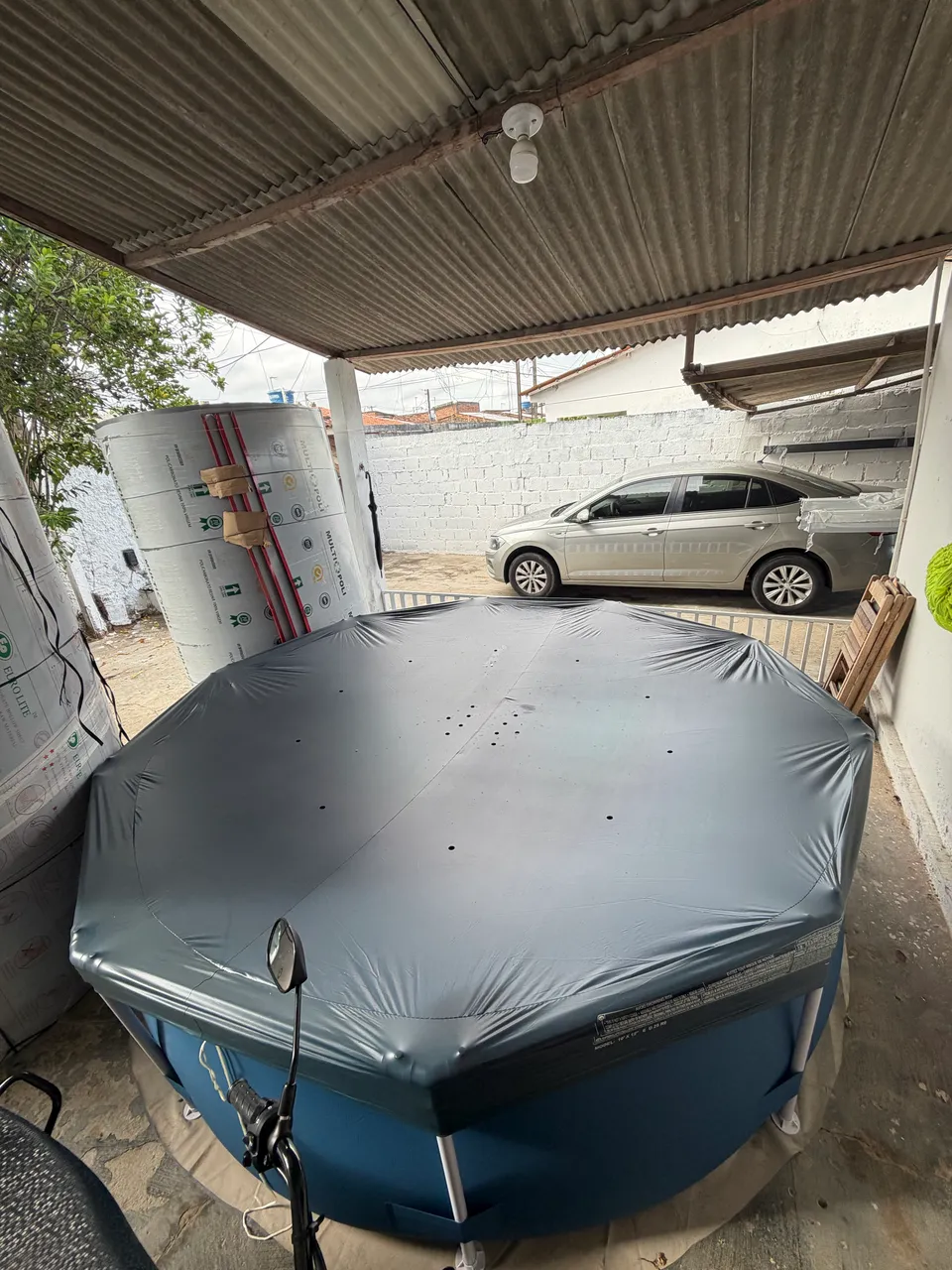 Piscina nova tem nem 1 mês usamos 2x porém temos uma loja e ela ocupou muito o lugar de colocar as coisas como podem ver na foto.