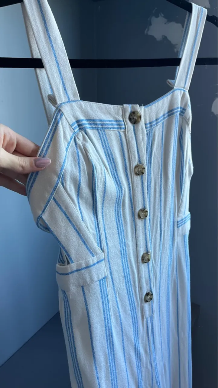 Macacão listrado Veste P Que usa tem uma altura de 1,65