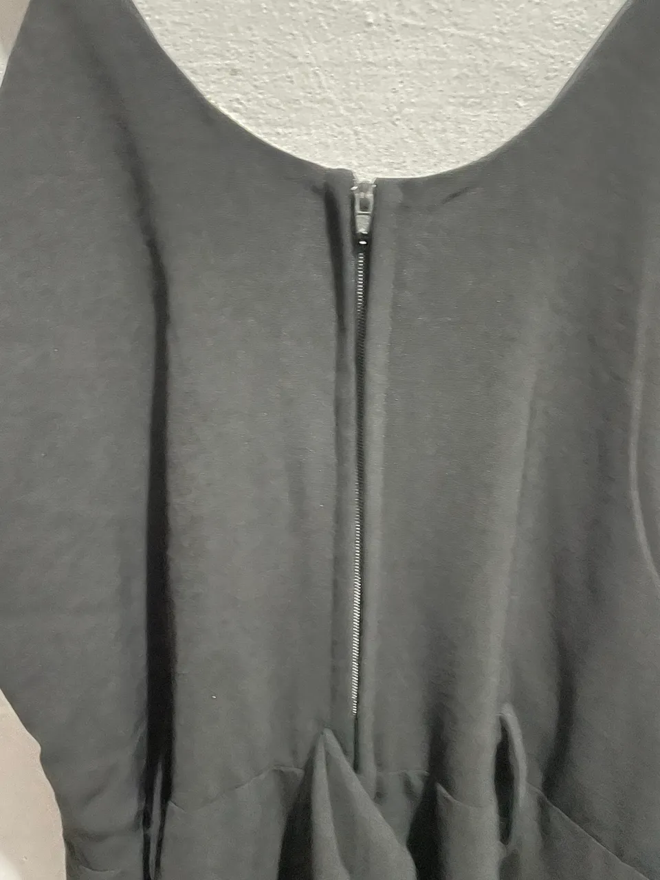Macacão preto alça fina decote V zíper na costa, cinto do tecido, forrado do busto a baixo do bumbum. Valor 130 alça regulável, e elástico nos pés