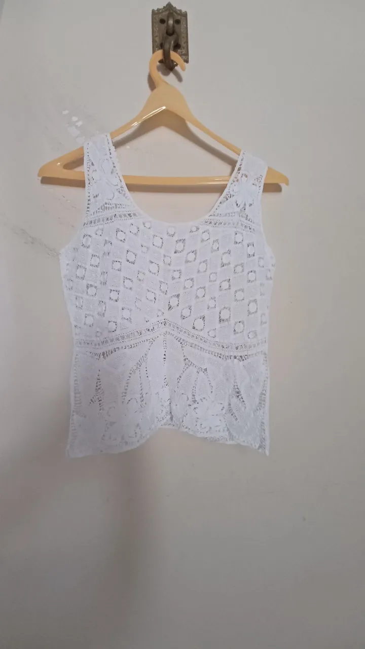 Linda regata renascença, com detalhes em renda delicada e design elegante. Perfeita para um visual charmoso e sofisticado.