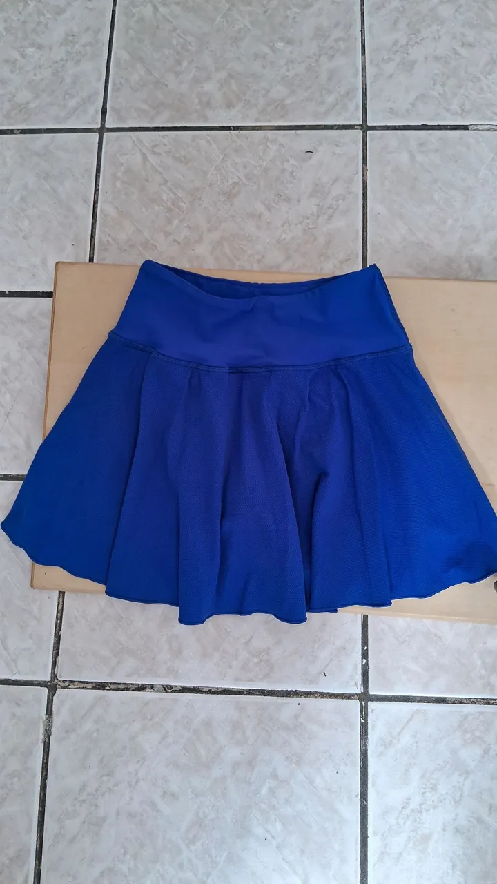 Lindo short saia em malha azul , perfeita para atividades físicas. Conforto e estilo em uma só peça!