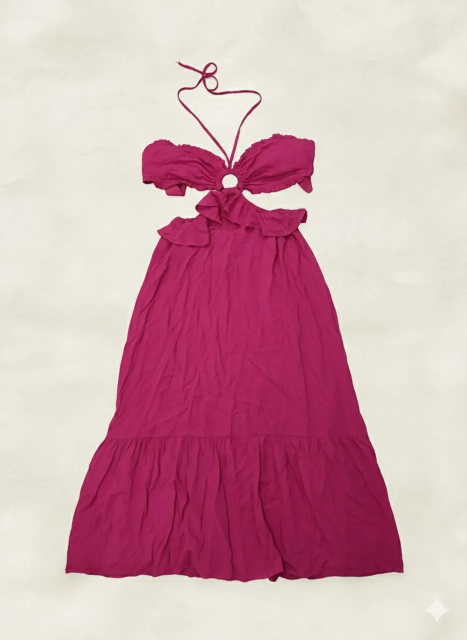 Deslumbre com este vestido longo rosa! Perfeito para ocasiões especiais, ele combina elegância e conforto. Seu design único e cor vibrante garantem um visual marcante.