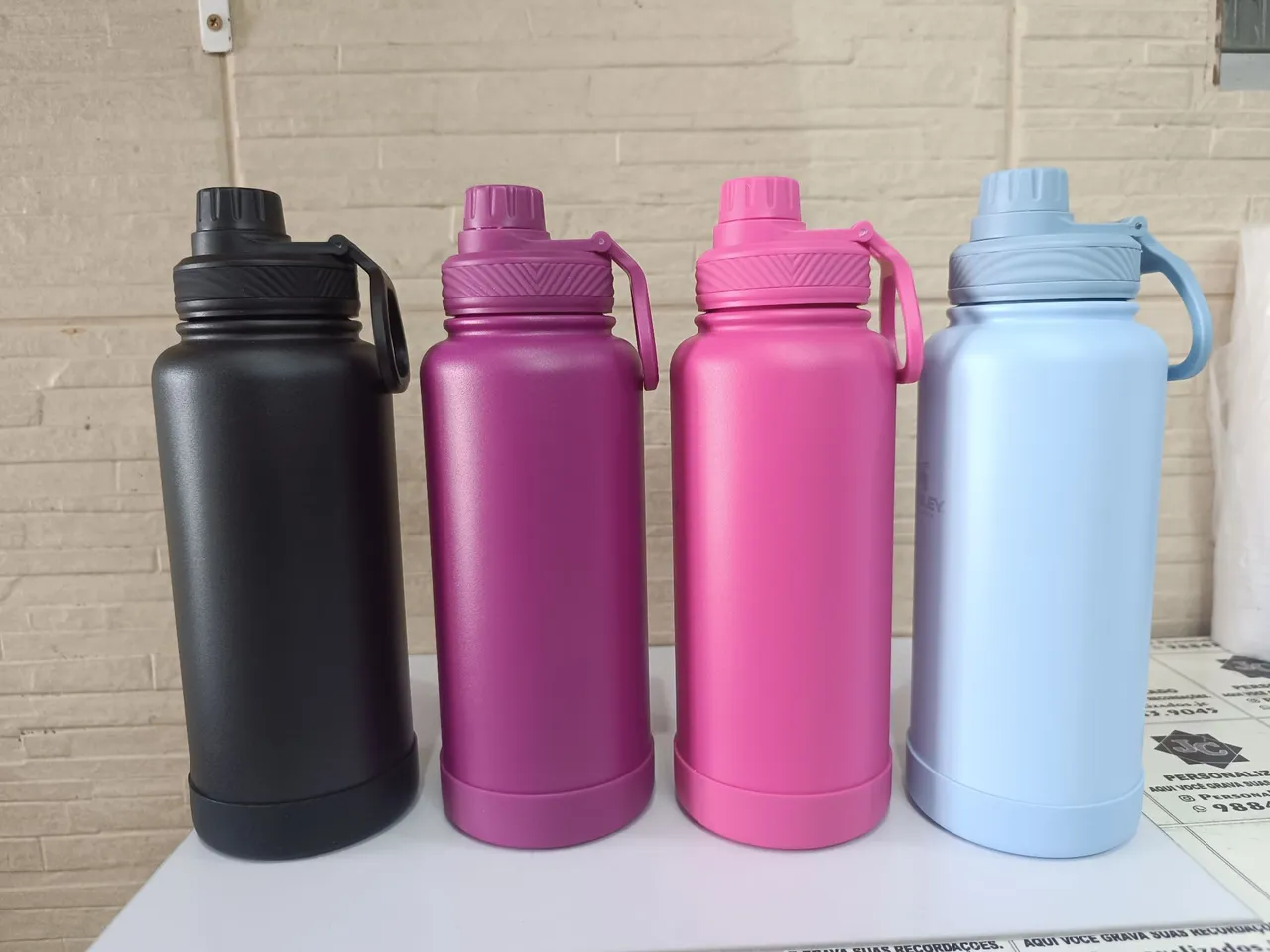 Belas garrafas térmicas, 1000ml, 1200ml, 800ml, uma variedade de cores e modelos, valores das garrafas já personalizados.