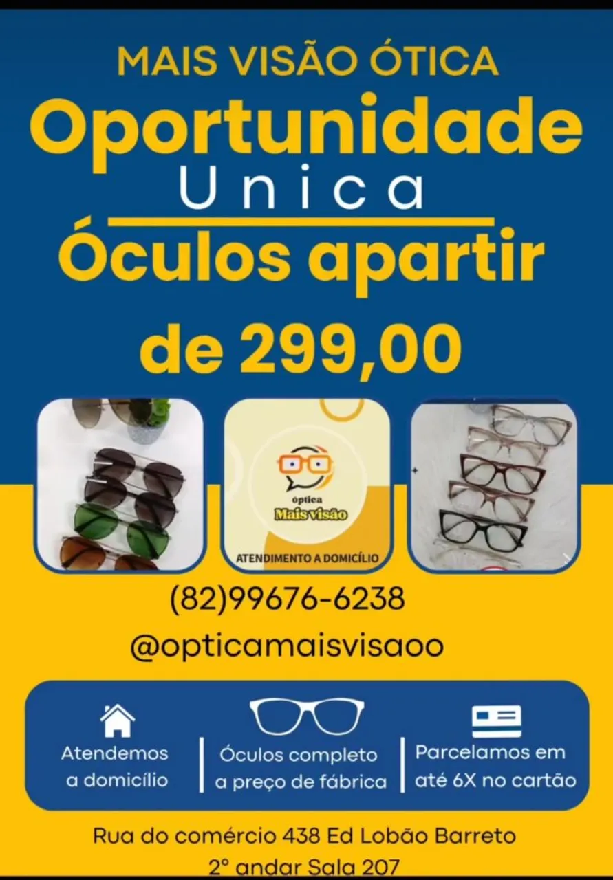 Na Ótica Mais Visão, você encontra óculos completo a partir de R$ 299,90.