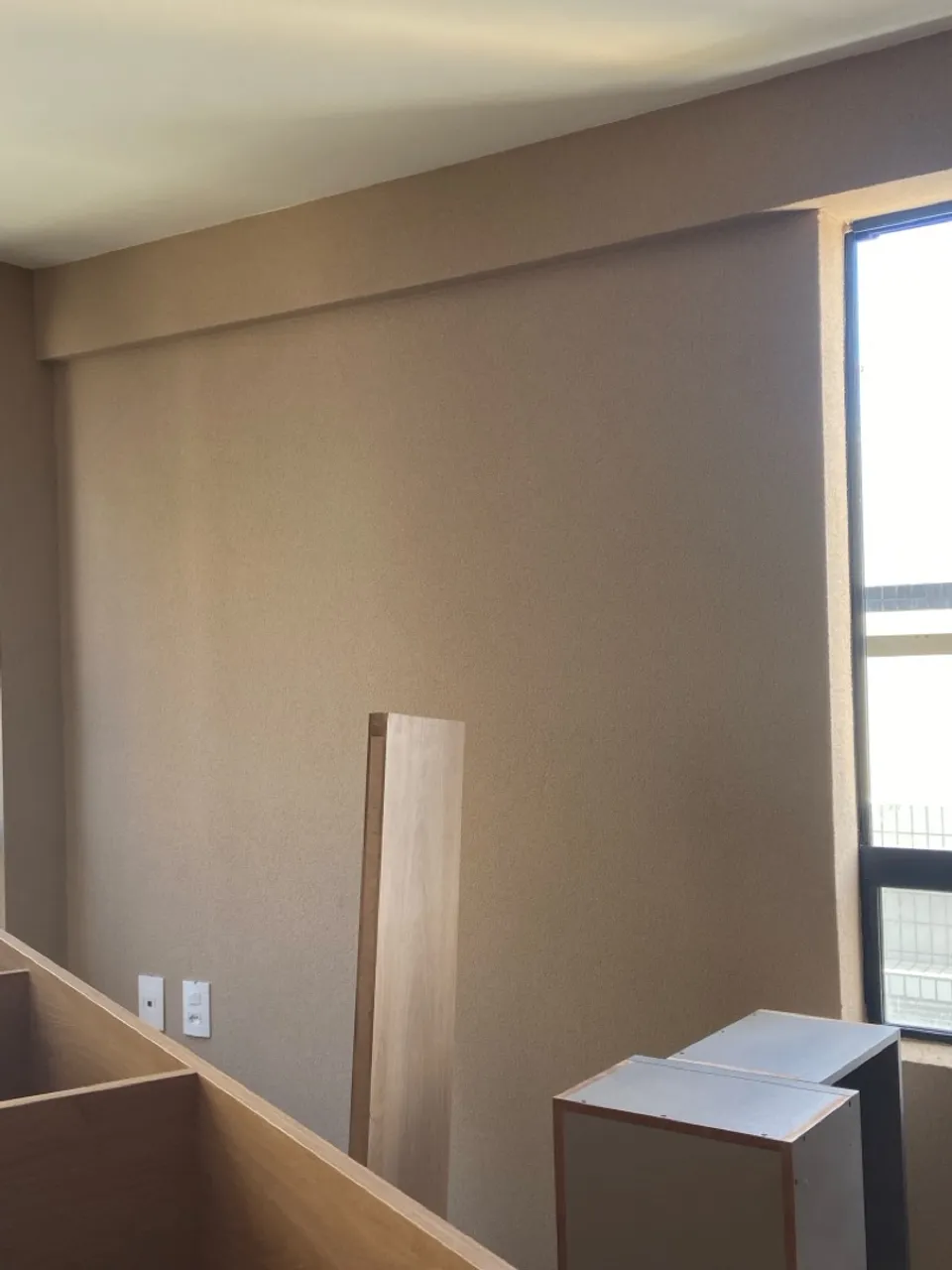 Aplicamos massa corrida e acrílica, lixamento com acabamento na luz.