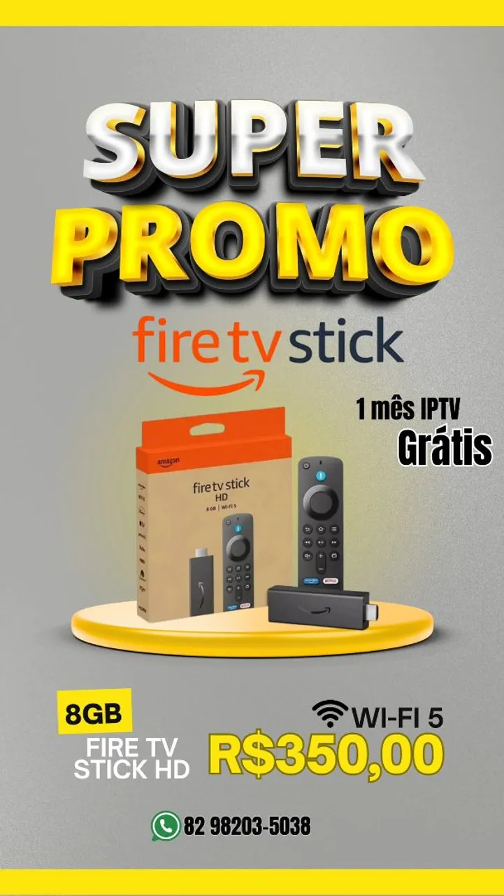 Transforme sua TV em um centro de entretenimento com o Fire TV Stick HD! Desfrute de streaming de alta definição, Wi-Fi 5 e 8GB de armazenamento. E ainda ganhe 1 mês de IPTV grátis! Não perca essa super promo!