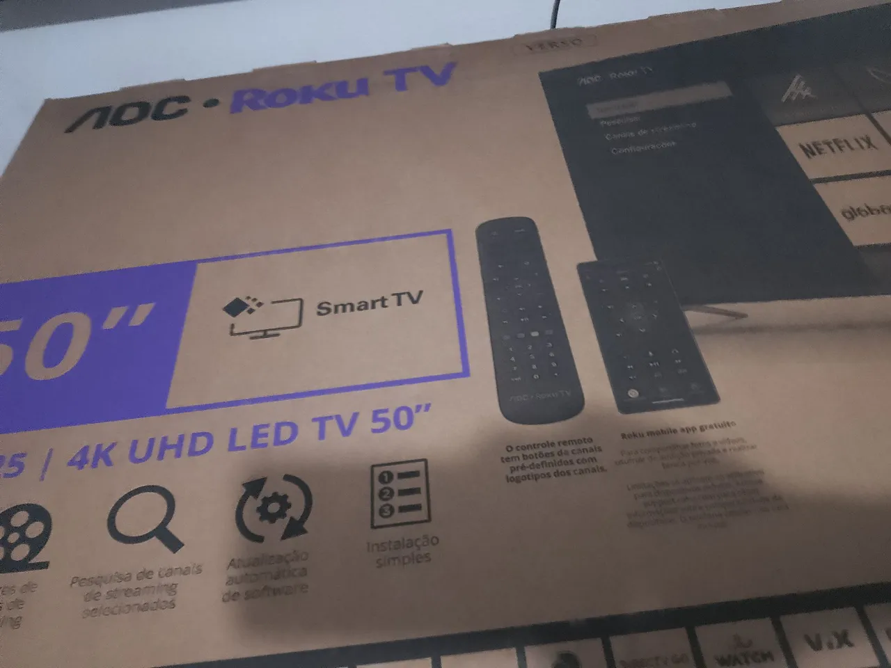 Aproveite a experiência de cinema em casa com a Smart TV AOC Roku de 50 polegadas! Com resolução 4K UHD e tecnologia LED, a imagem é vibrante e cheia de detalhes. A instalação é simples e a atualização de software é automática. Possui pesquisa de canais de streaming selecionados e controle remoto com botões pré-definidos para seus canais favoritos. Perfeita para suas noites de filmes e séries!